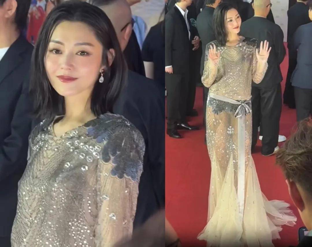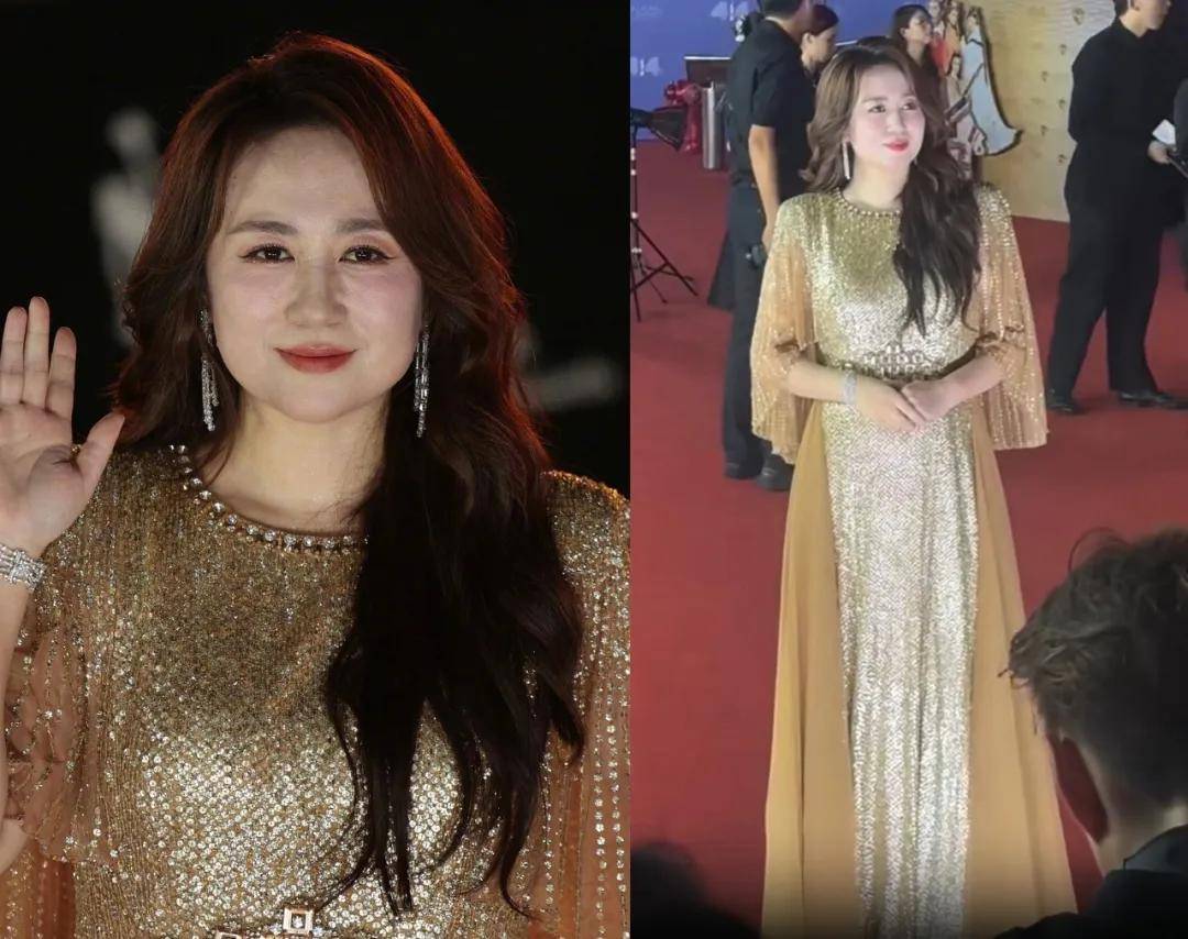 凭借《水饺皇后》入围了最佳女主的马丽穿了一条金色长裙,搭配显气色的妆容和长卷发,贵气十足。