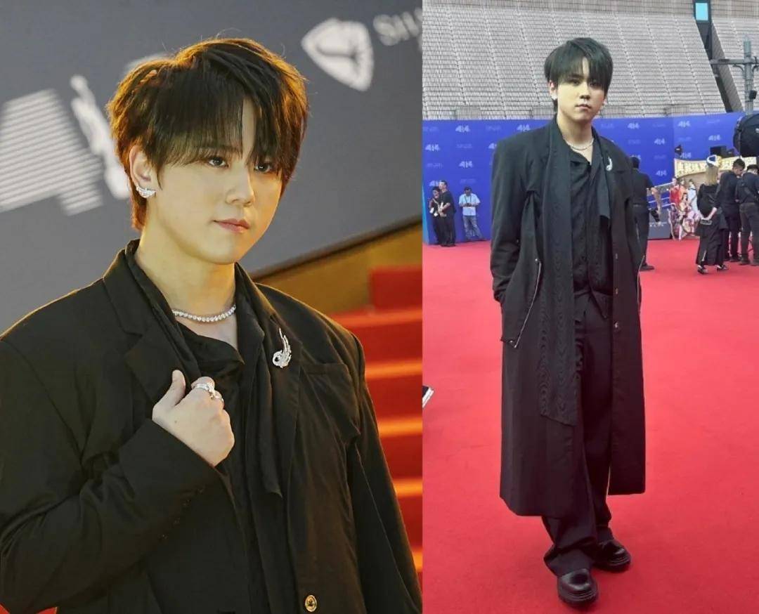 香港顶流姜涛穿了全黑的衣服,虽然黑色衣服在视觉上能显瘦,但生图里他的下颌线确实变得明显了。